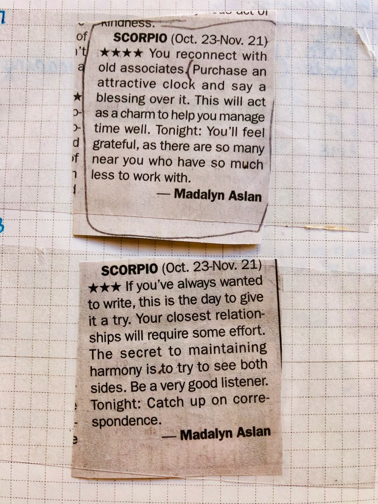 After finishing up Julia Cameron’s The Artist’s Way this past semester, I have been collecting bits of what she calls “synchronicity.” Maybe because this season I am obsessed with all things time – did you know horology was the study of time? – and of course all things writing. So when they come together, it’s got my attention. I have a page in my trusty Wonderland 222 planner with all the synchronicity so far.