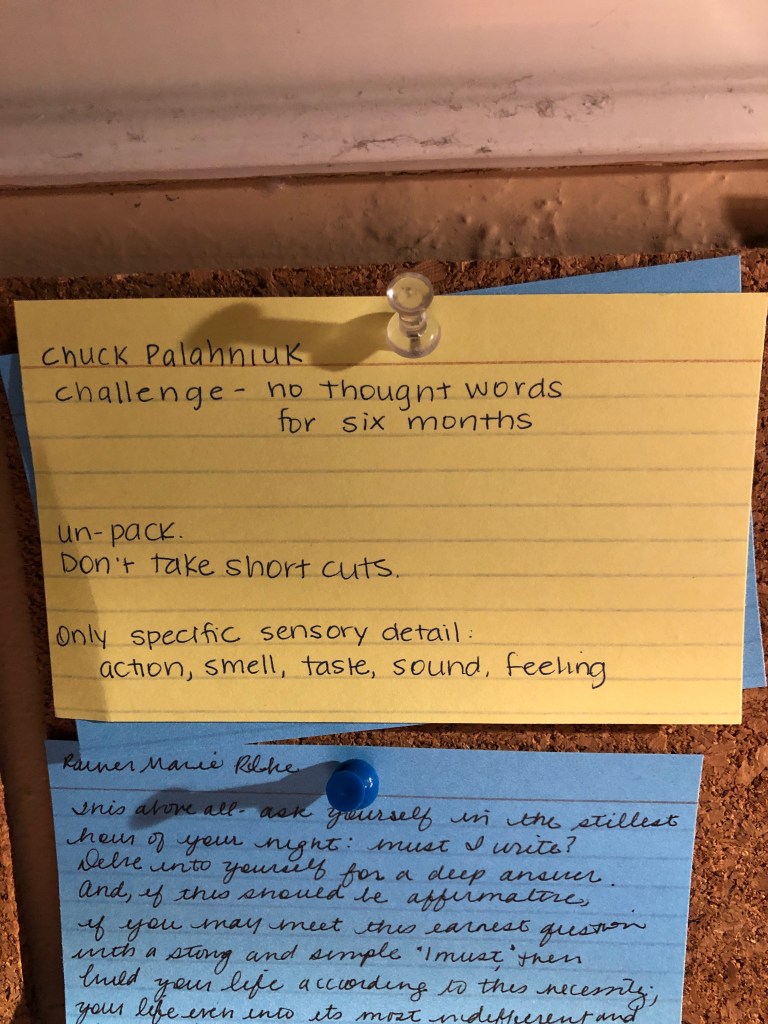Chuck Palahnuik blew my mind away this weekend. He managed to diagnose a huge writing issue that I have with one blog entry. Magic, huh? And I didn’t even get to it on my own. I was attending a zoom lecture by Shaunta Grimes and it was a simple link in the notes.