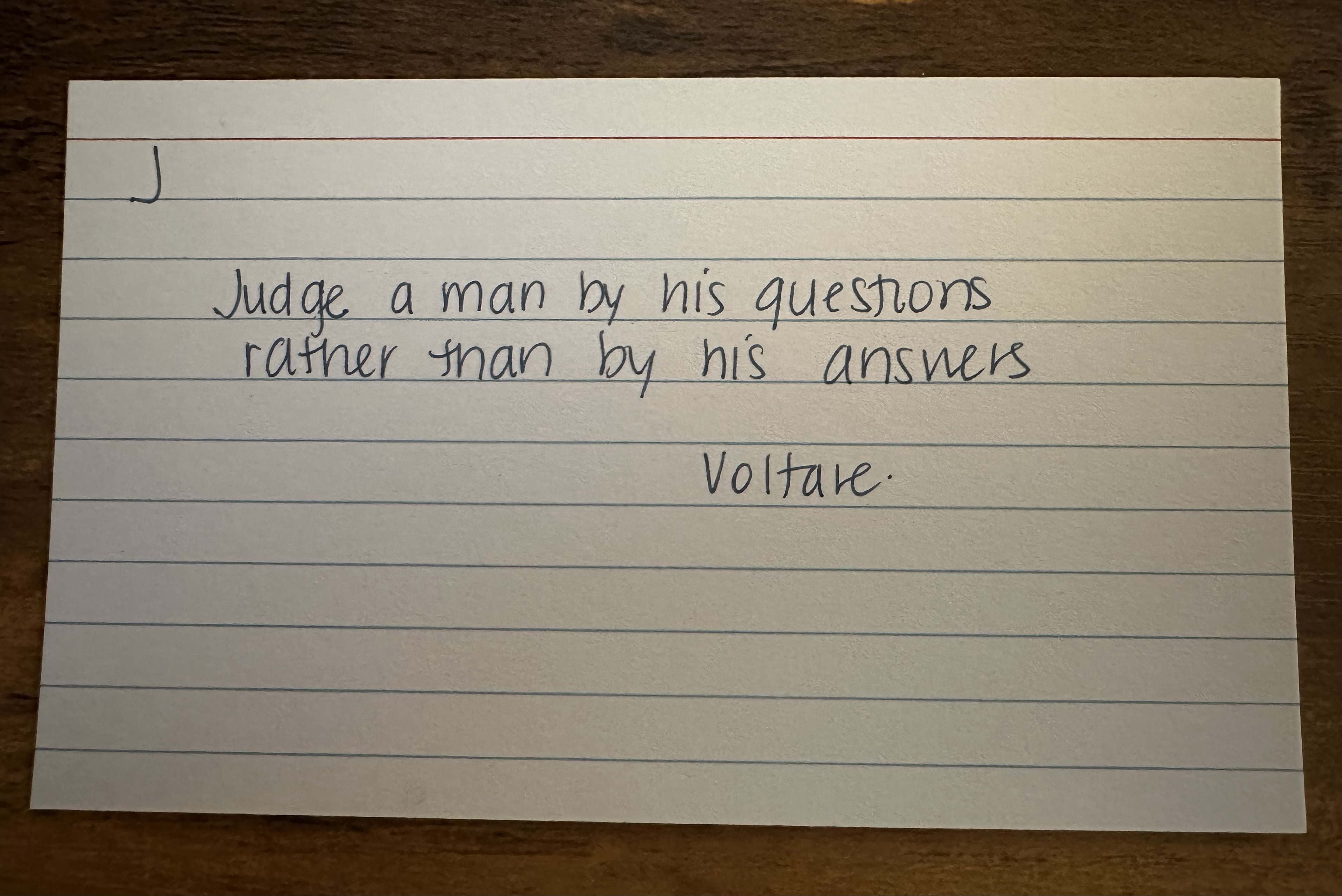 I like that suggestion of yours, that maybe we need more questions, not more answers.