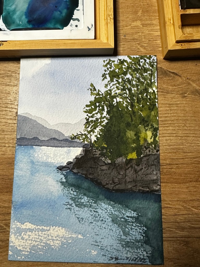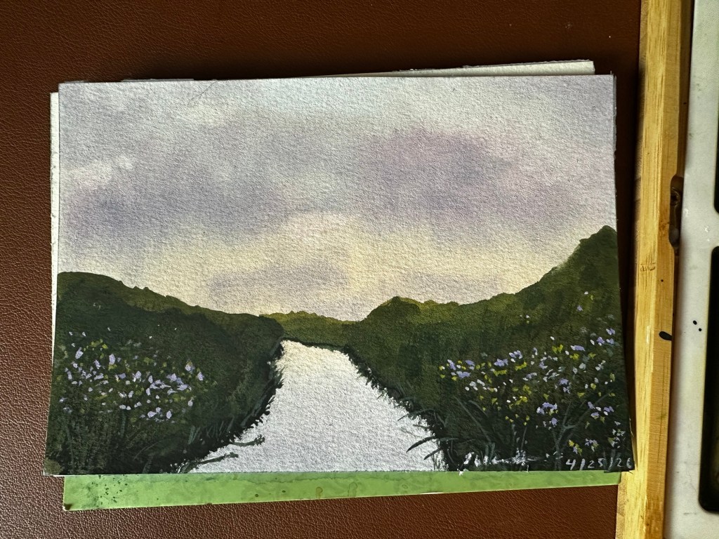 So there, you can imagine it. And trust me, anything you imagine will be better than how I painted it. Really. But here is a river I painted yesterday. And a random bird.