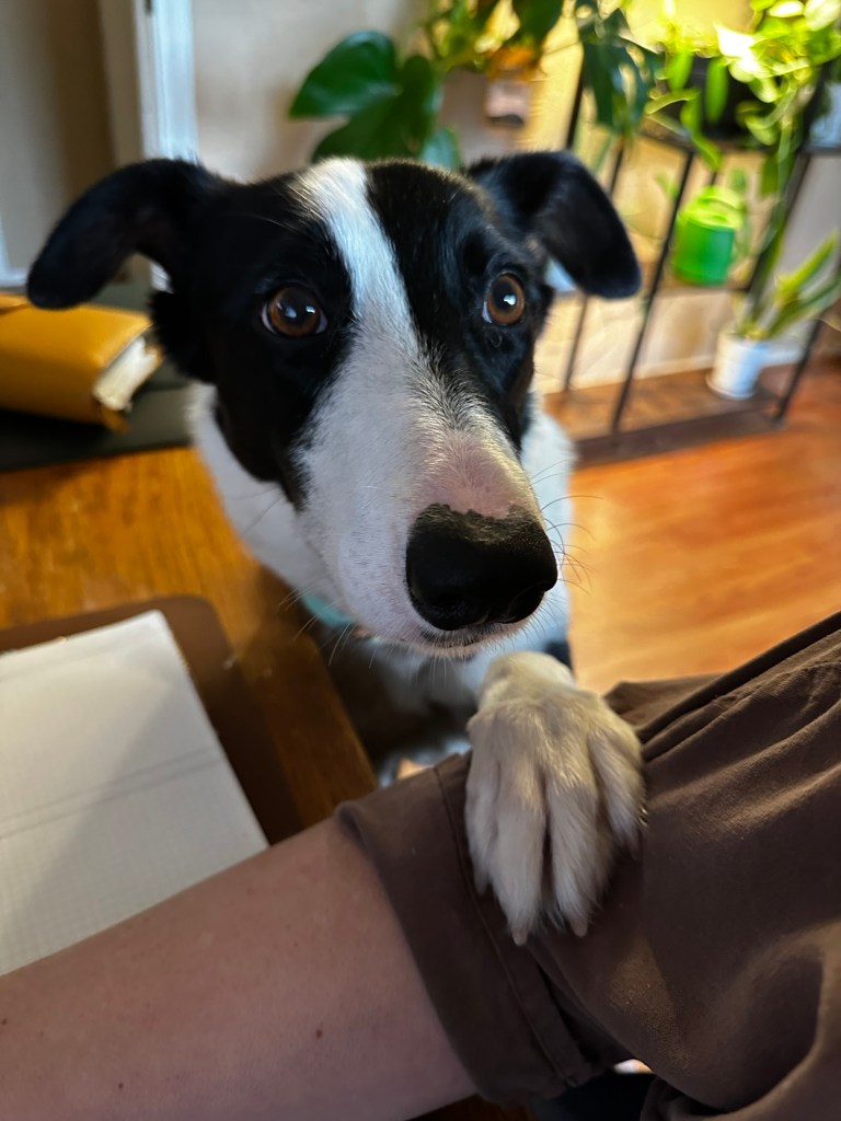 Once again, I planned to do too much in April, so therefore, I did none of it. This little cutie is part of it, a rescue who is afraid of her own shadow. She decided I was her emotional support human, so that and a day job where I am an administrative support human kept me away from my blog, my art desk, and other creative outlets. (Notice too, Story Sunday’s have also fallen by the wayside. But in my defense, I really don’t like short stories and I only try to write them because I “should” to improve my writing.